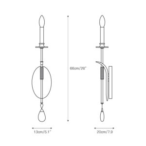 D 13 cm x B 20 cm x H 66 cm / ∅ 5,1″ x B 7,9″ x H 26″.