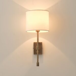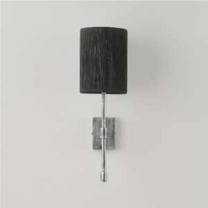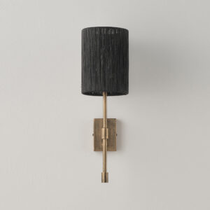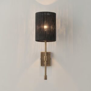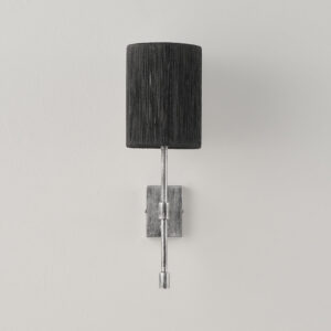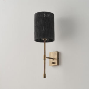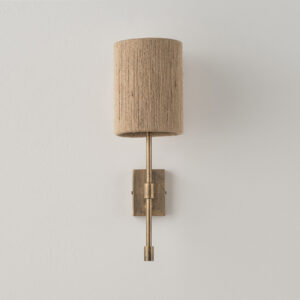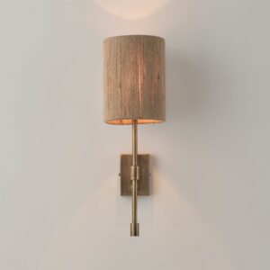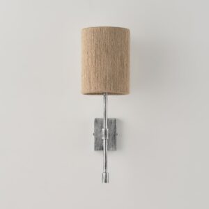 Lampenkörper aus Eisen. Lampenschirm aus Stoff oder Hanfseil.