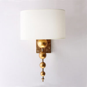 Lampenkörper aus Messing. Lampenschirm aus Stoff.